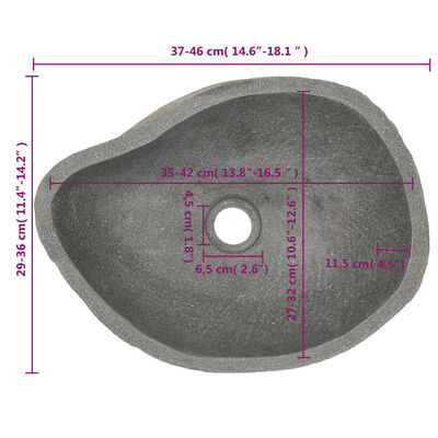 Lavabo en pierre de rivière Ovale (37-46)x(29-36) cm