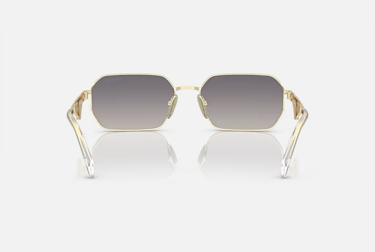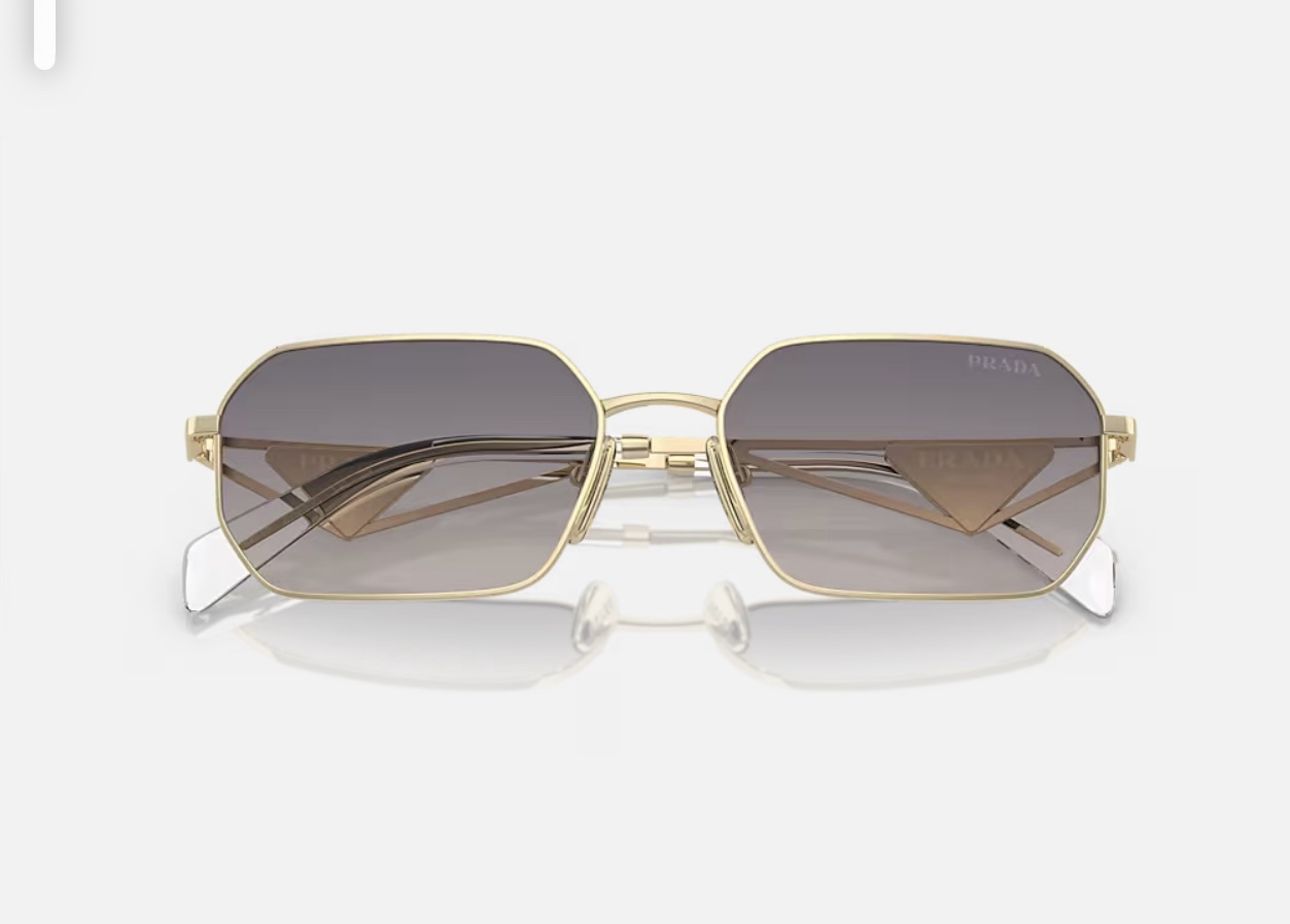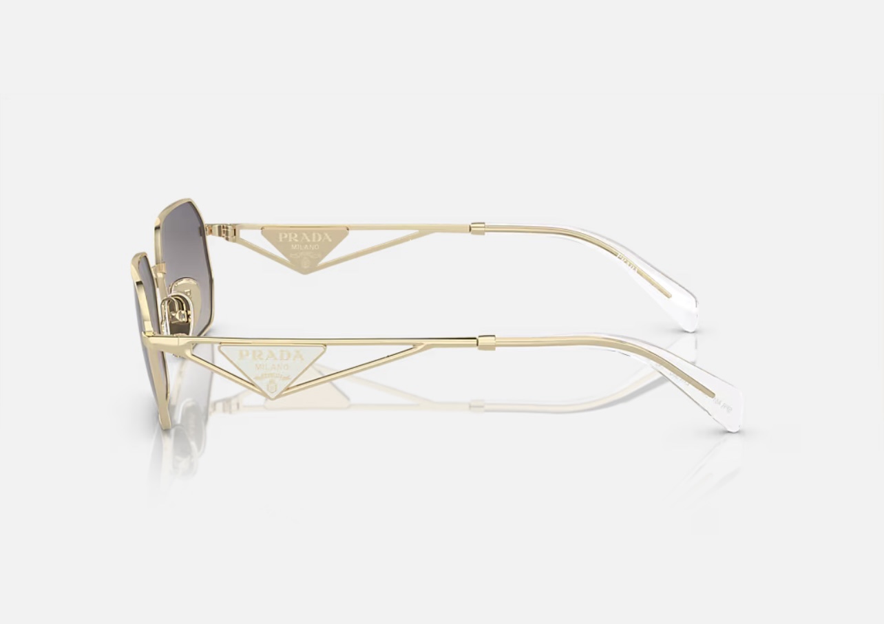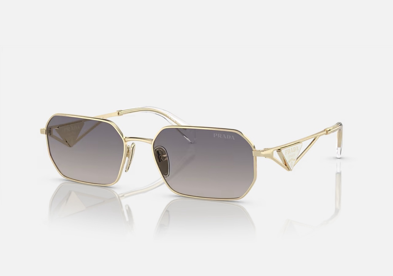 À l’intérieur du triangle se trouve le logo du sac à main Prada, un symbole de la marque que l’on reconnaît instantanément.